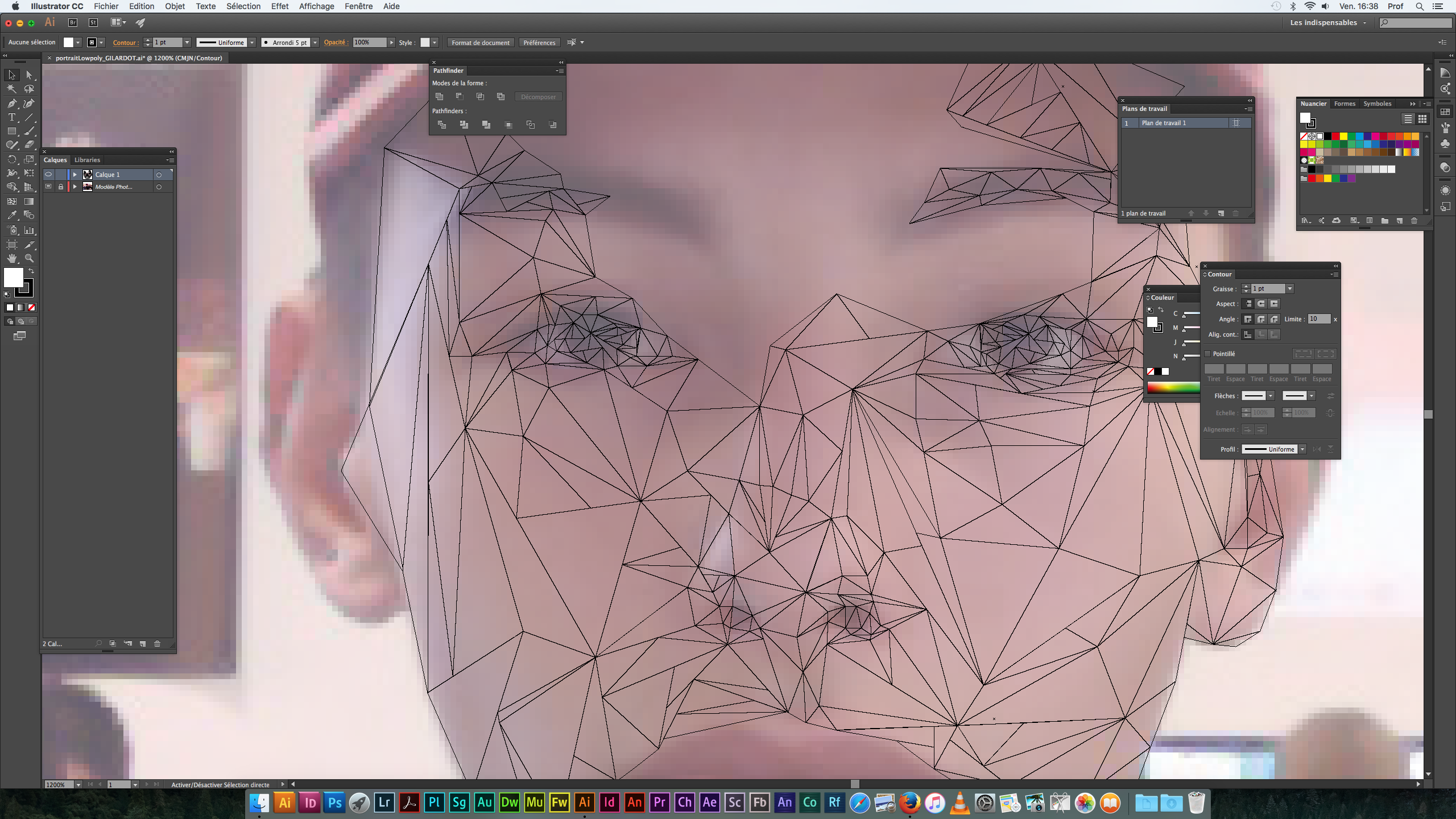 Réalisation d'un autoportrait stylisé en une série de polygones. L'objectif de cet exercice est double : apprendre à simplifier une image complexe afin de la réduire à ses caractères les plus essentiels mais aussi apprendre à manipuler la Plume vectorielle. Durée : 9 h.