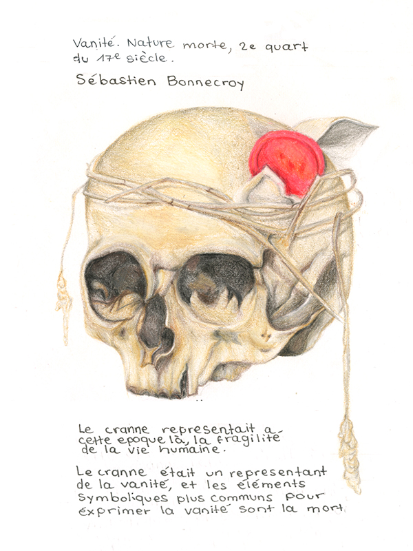 Une visite de l'exposition « Les Choses » au Louvre a initié cette séquence. Les élèves l'ont exploré guidés par une conférencière. Ils ont noté par le dessin les détails qui les interpelaient. Ils ont également été invités à choisir l'une des phrases qui ponctuent cette exposition. L'une d'entre elle est extraite de « La complainte du progrès » par Boris Vian, qui énumère de façon aussi gouailleuse que surréaliste, toute une liste de choses sensées représenter le progrès et apporter le bonheur.